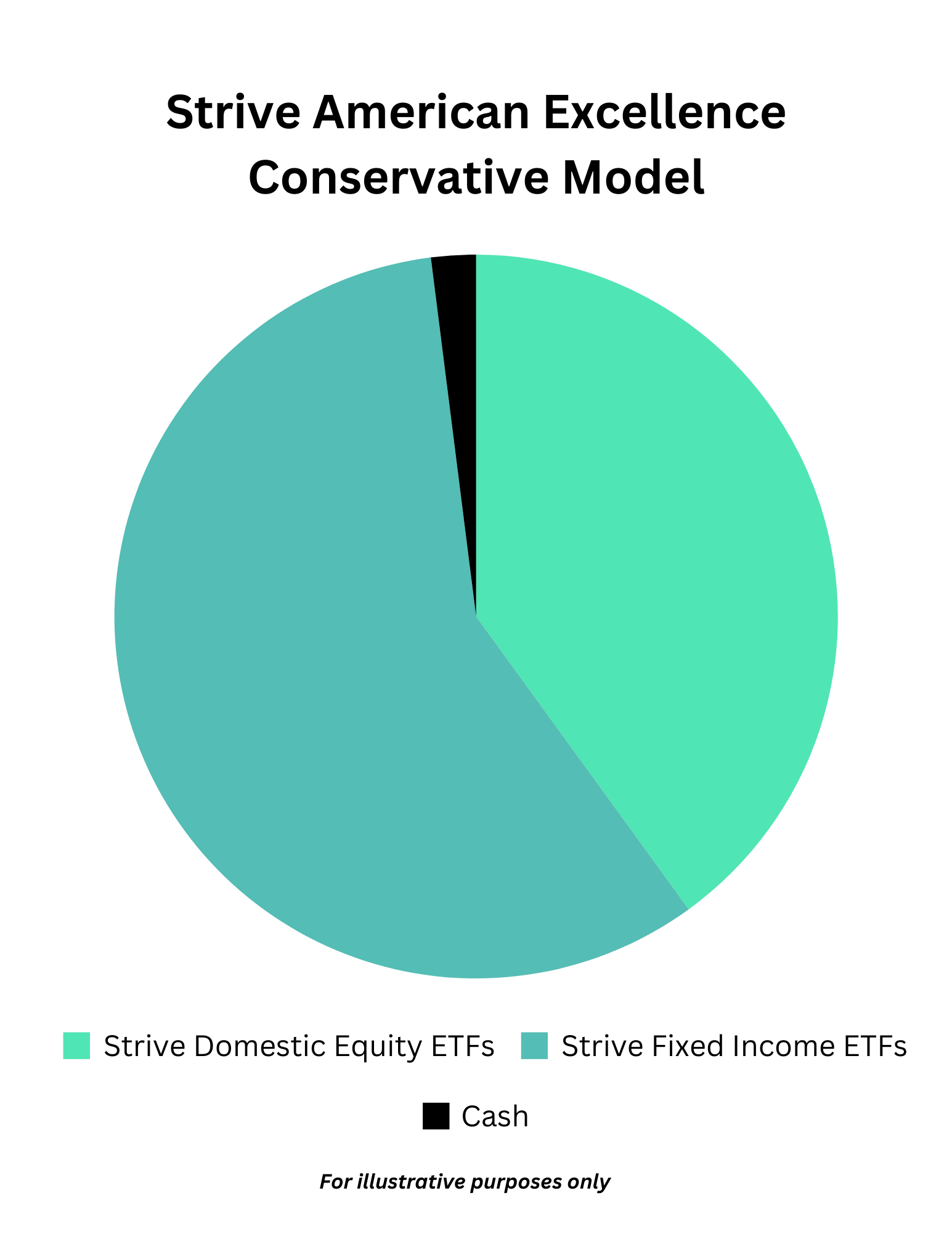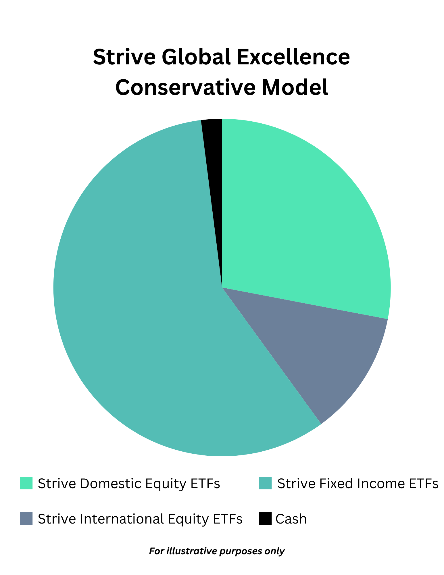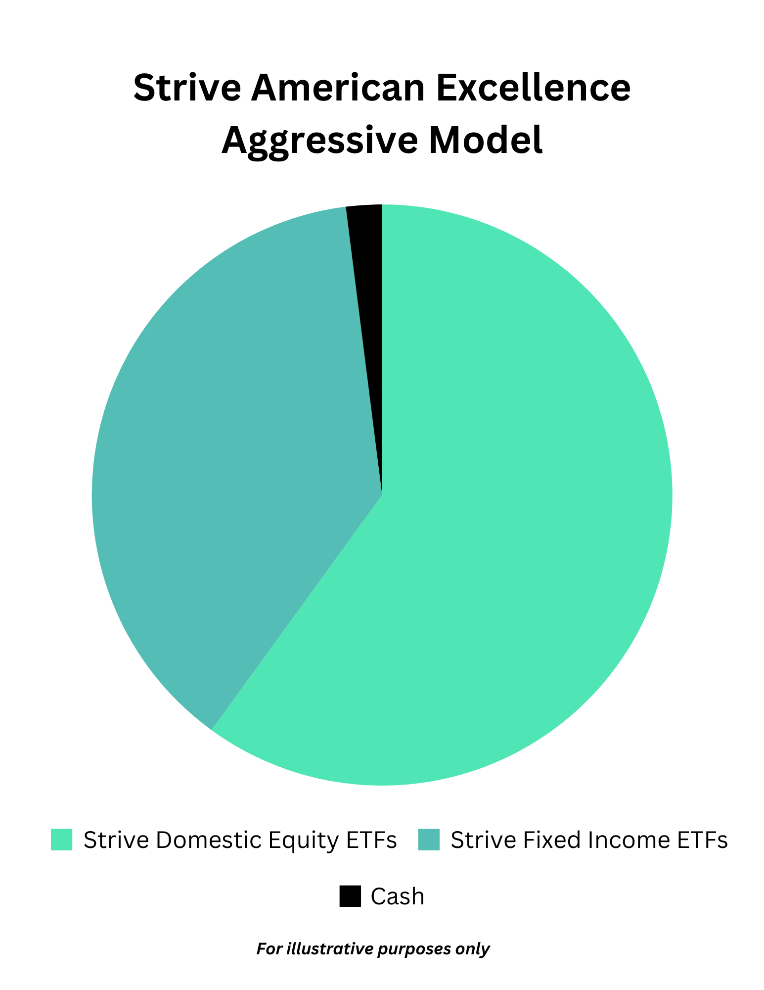 Strive’s model portfolios are designed to provide an affordable and customizable approach to portfolio management. With eight portfolios to select from, they allow advisors to meet their clients’ exposure and risk preferences with Strive’s strict pro-fiduciary duty mandate. See examples of three of the portfolios below; for illustrative purposes only.