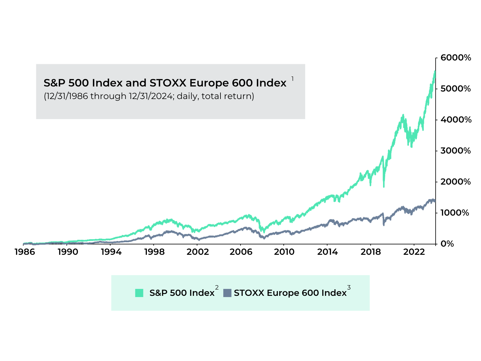 America and Europe not only experienced a significant divergence in ideas, but they also experienced a significant divergence in outcomes. Over the past 35+ years, American shareholder capitalism has outperformed European stakeholder capitalism by 3.74% annualized, as exemplified in the graph.